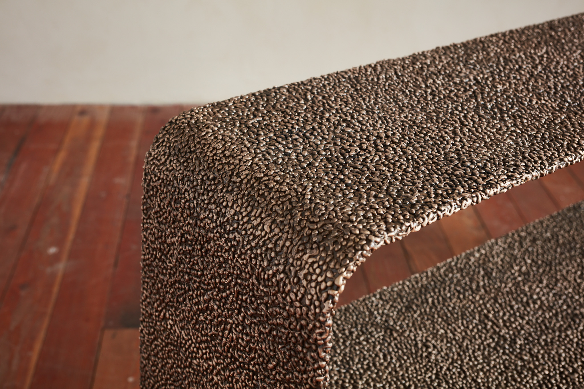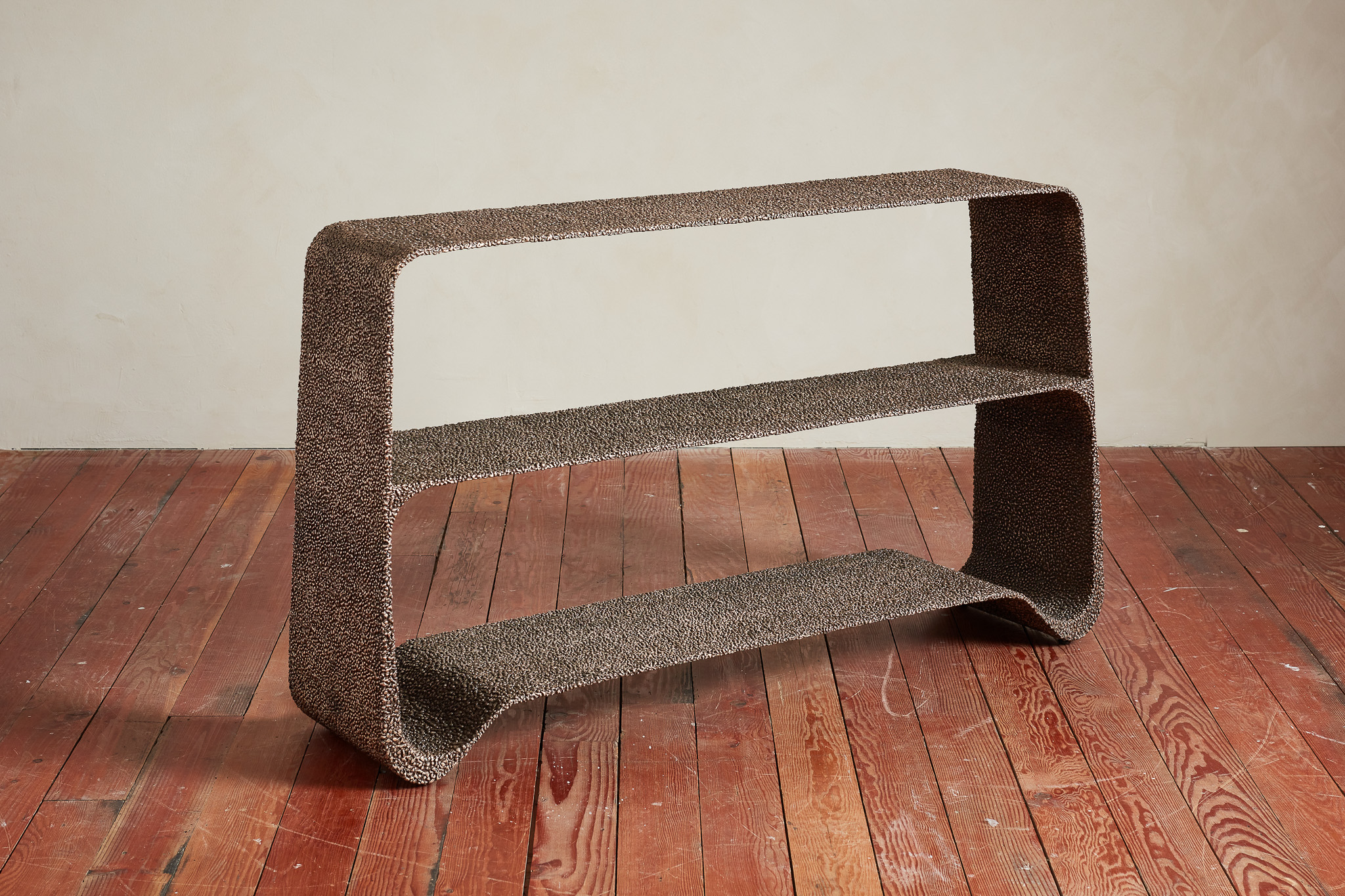 The Ebb & Alloy Console embodies the dialogue between nature’s softness and industry’s strength. Bronze, hammered and finished entirely by hand, takes on a fluid form that recalls the movement of water, yet remains grounded in the permanence of metal. Each piece is one of a kind, transforming a functional console into a sculptural statement—an object meant to be lived with, admired, and passed on.